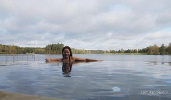 Hela spabyggnaden vätter mot sjön vilket är fantastiskt. Det ger ro och stillhet, en naturligt utsikt och mycket ljus för att inte tala om den extra upplevelsen att hoppa i från bryggan efter ett långt bastupass! (Det gjorde jag, helt underbart trots de 14 graderna. Men nu går jag händelserna i förväg… 😉 )!